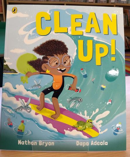 up votes in all the classes. In fact some Y2 children gave it "a thousand" thumbs up! Miss Saffer said she loved the illustrations, Miss Cessford thought it was easy for children to relate to. In Y3 it started a discussion about how you define a vegetable, and a fruit and that it can be quite confusing to decide which fits where. But of course the book as tells us it doesn't really matter! Clean Up by Nathan Byron & Dapo Adeola