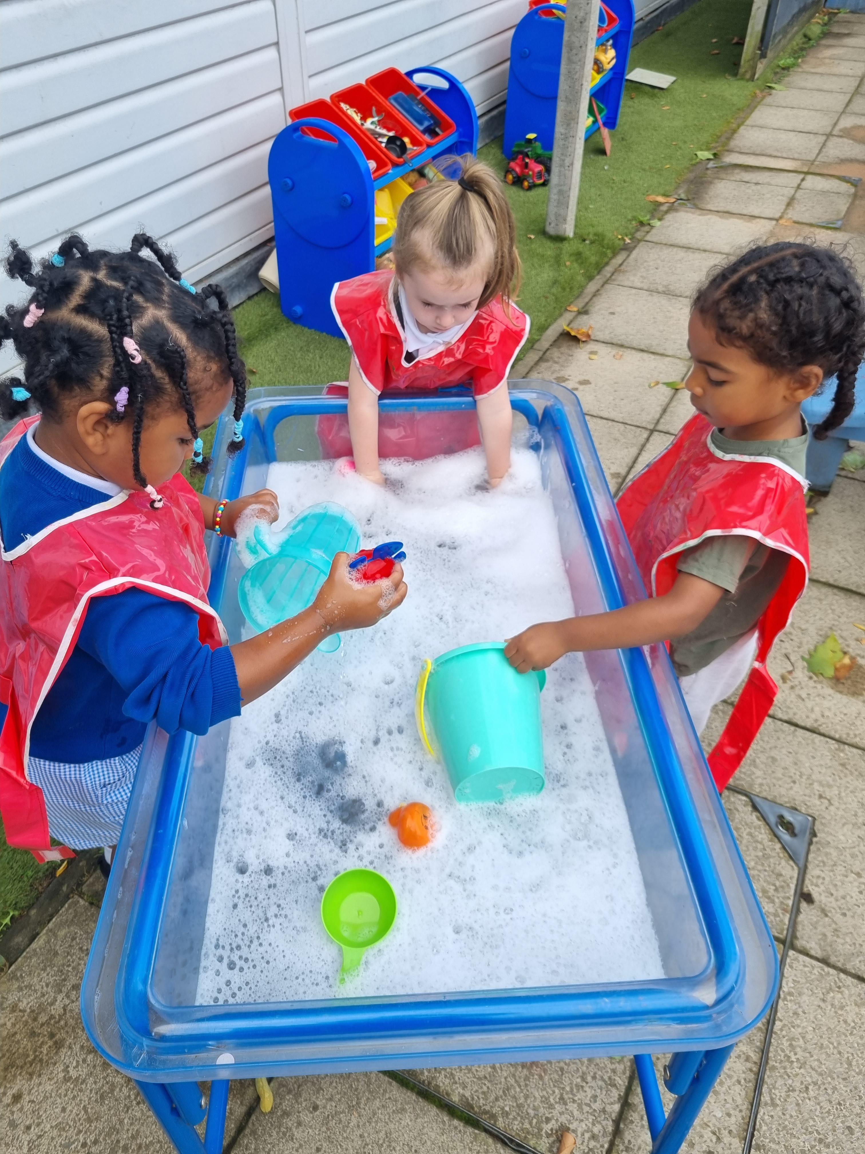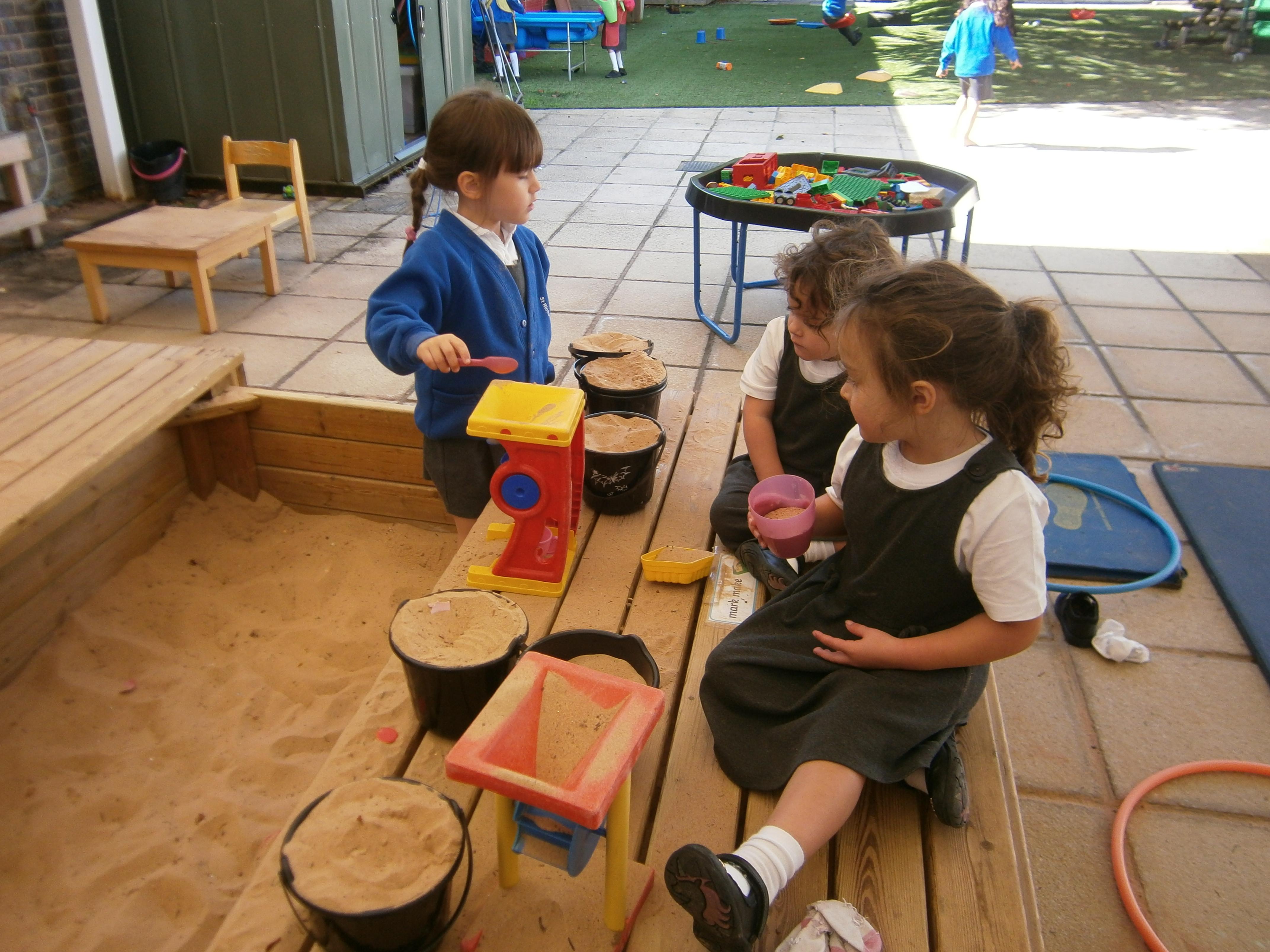 Within the Early Years we have a balance of adult-led, adult-initiated and child-initiated play. Child-initiated play enables the children to self-select from the environment and lead their own learning and the various topics that they will encounter will be driven from the children's interests, thus allowing the children to plan their next stages of learning. Often the children transfer their toys and resources from one area to another, for example taking play dough into the home corner or mixing mud in the water tray. The adults will engage in the learning with the children becoming part of the play. Through these interactions and focused observation, adult-initiated and adult-led activities are carefully planned for each individual child's needs, taking into account the children's interests.